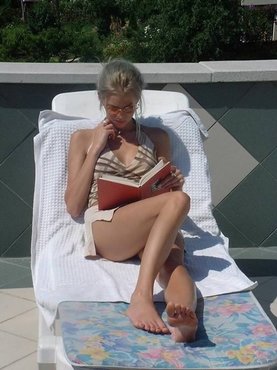 Темнокожая потаскушка с маленькими сиськами захотела поваляться под палящим солнцем и сняв с себя абсолютно все легла на шезлонг. Вскоре голая негритянка решила перевернуться со спины на животик, но чтобы не получить солнечные ожоги намазала себя кремом для загара. За все это время черная сучка не прикрывала свои прелести и показывала как сиськи, так и сладкую письку с упругой попой.