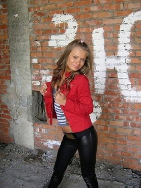 Раскрепощенная давалка прогуливалась по набережной в красном плаще, который был расстегнут, чтобы Елена имела возможность показывать грудь и зону бикини. После хождения около воды, развратница пошла на стройку, где позволила себе раздеться до конца и продемонстрировать писю и другие прелести на фоне заброшенного здания.