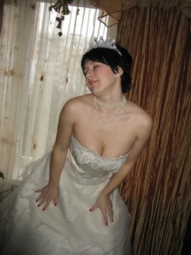 Очаровательная грешница любящая оголяться у себя дома, сразу после свадьбы поспешила в квартиру и там села на кровать в свадебном платье и начала светить попкой. Вскоре невеста оголилась до нижнего белья и начала позировать в нем. выставляя на показ свои прелести спрятанные под белыми трусами и бюстгальтером.