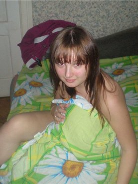 Молодая представительница женского пола пришла в гости к своему знакомому и накинула на полуголое тело черных халат, после чего пошла в спальню и сняла его вместе с трусами. Раздевшись догола девушка легла на двуспальную кровать и начала на ней светить не только большими молочными железами, но и ухоженным влагалищем.