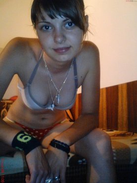 Темноволосая мамзель с тощим телом закрылась в своей комнате и, став недалеко от стены увешенной небольшими картинами, разделась до нижнего белья. Стоя лишь в трусиках и бюстгальтере, худенькая мамка старается выглядеть максимально привлекательно и соглашается показывать себя не только спереди и сбоку, но и сзади.