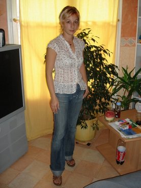 Красивая молодка захотела похвастаться своей фигурой и сменила домашнюю одежду на черный комплект нижнего белья, в котором разлеглась на полу и стала позировать. Вскоре стройная краля с плоским животиком осталась в одних только трусиках и продолжила показывать с разных сторон подтянутые формы, которые хорошо вписываются в интерьер комнаты.