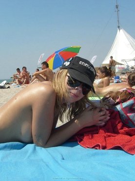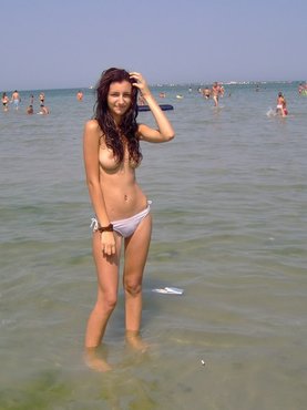 Темнокожая брюнетка с кудрявыми волосами отправилась отдыхать под открытым небом и, придя на пляж, постелила на берег подстилку, а затем сняла с себя верху купальника и стала отдыхать топлес. Пошлая негритянка не стесняется светить своими черными сиськами сидя лишь в оранжевых плавках, так как она считает свои титьки очень красивыми.