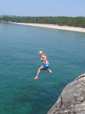 Приехав на природу, взрослая женщина легла на песок сняв с себя верх от черно-оранжевого купальника и стала светить своими крупными титьками. которые выделяются бледным пятном на фоне загорелого тела. На следующий день зрелая блонда поехала поближе к березам, стоя возле которых она рискнула остаться абсолютно голой.