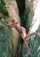 Прелестная удовлетворительница была в горах и обнаружила там небольшую пещеру, в которой ей захотелось попозировать перед фотоаппаратом в голом виде. Длинноногая стерва разделась и забравшись в понравившееся место начала принимать различные вызывающие позы, в которых было отлично видна ее сладенькая промежность и аппетитная задница.