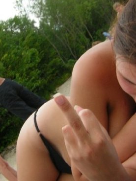 Не смотря на пасмурную погоду прекрасная сучка отправилась гулять в парк, так как ей очень хотело показать голые прелести в публичном месте. Прибыв на место, рыжая красавица распахнула куртку, показав что на нее надеты лишь черные чулки и трусики, а затем стала сексуально позировать, демонстрируя во всей красе упругие дойки.