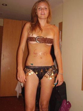 Пошлая негритянка с черными волосами стала посреди комнаты и сняла с себя черный бюстгальтер и бейсболку. Оставшись лишь в трусиках, темнокожая развратница принялась хвастаться бюстом, однако из-за стеснения прикрыла его руками. Не смотря на то, что афроамериканская мамзель прикрыла сиськи, татуировку на левой груди было неплохо видно.