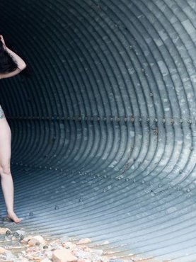 Молоденькая пышка с огромными титьками вышла во двор и пошла под навес, чтобы там снять с себя не только кофту, но и комплект белья состоящий из полосатых трусиков и лифчика. Аппетитная толстушка по имени Роза не стесняется хвастаться крупными буферами и с радостью показывает их в сочетании с замечательной попкой.