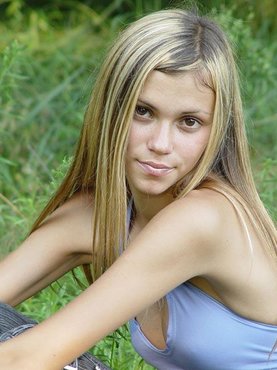 Симпатичная телочка с упругими сиськами отправилась на природу и найдя подходящее для разврата место стала снимать с себя джинсовые штаны и футболку. Вскоре на теле блонды были только носки и кроссовки, которые абсолютно не мешают ей светить ухоженной мандой, которая хорошо сочетается с аккуратными дойками.