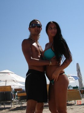 Сексапильная брюнетка только что пришла после пляжа, она еще не успела снять купальник, как вспомнила о загорелом красавце, с которым она познакомилась на пляже. Ее возбудило это знакомство и красавица сняла свой полосатый купальник и продемонстрировала самые сокровенные места. После этого, прелестница переходит к мастурбации умелыми пальчиками.