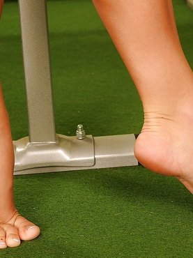 Не слишком стеснительная шатенка решила раздеться на берегу водоема, расположившись на пирсе. Желая показать всем отдыхающим свои обнаженные прелести, девушка сняла майку и короткие джинсовые шорты. Она попозировала стоя, демонстрируя ножки, красивую грудь и изгибы идеальной фигуры, а затем уселась на пирс попкой и развела бедра, чтобы показать бритую щелку.