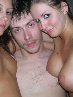 Красивые сучки пришли на вечеринку и там познакомились с мускулистым чуваком, который без труда уговорил легкодоступных давалок на половой акт. После того как вертихвостки разделись, привлекательный мужчина дал им в рот свой мощный причиндал, а затем начал по очереди трахать во влагалище каждую из сегодняшних любовниц.