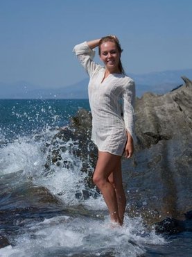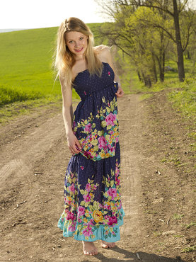 Темноволосая нимфа стала на берегу реки и сняла с себя цветастый сарафан, оставив свое стройное тело полностью голым. Брюнетистая искусница не стесняется позировать на природе показывая во всей красе аппетитные молочные железы, а так же не стыдится становиться так, чтобы были видны ее немного волосатые дырочки, которые так и напрашиваются на член.
