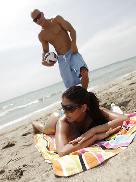 Лысый трахарь подошел к загорающий на берегу озера телке и достал свой болт из шортов, чтобы она его отсосала. После минета блонда с большими сисями сняла с себя солнцезащитные очки и купальник и начала трахаться с удовлетворителем под открытым небом, дожидаясь момента, когда тот скажет что хочет кончить и угостит ее свежей спермой.