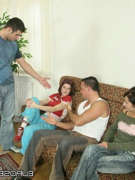 Две блондинки получили звания самых сексуальных девушек города, о чем свидетельствуют корона и атласная лента, и чтобы отпраздновать это, устроили групповуху с несколькими мужчинами прямо на полу квартиры. Так как победительницы конкурса красоты были не прочь трахаться сразу в киску и ротик, большую часть времени они позволяли долбить их в две дырки одновременно.