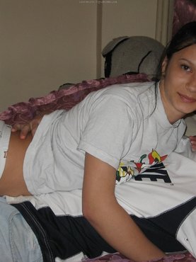 Сексуально озабоченная толстуха встретилась с типом и оголилась перед ним до трусов, после чего позволила играть со своими огромными дойками, которые обвисли от собственной массы. Пошлая жируха в синих стрингах наслаждается тем, что кавалер целует ее соски украшающие большие сисяндры и очень сильно от этого возбуждается.