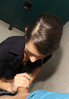 Молодая милашка с волосами заплетенными в косу закрылась в туалете с избранником и принялась сосать его большой хер стоя на коленях. Бестия в черной рубашке старательно вафлит крупный пенис умелым ротиком и старается доставить мистеру как можно больше наслаждения. После того как соска разделась догола, она позволила грешнику обкончать ее мужским соком.