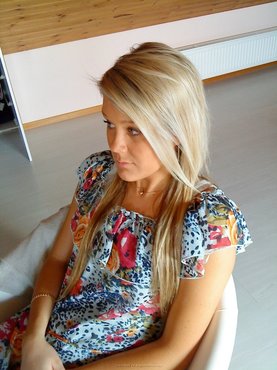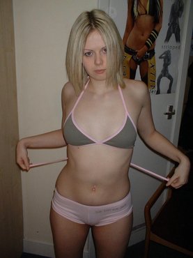 Молодая блондинка сняла с себя футболку и осталась сидеть на черном стуле только в розовых носках. Взяв стеклянную секс игрушку и увлажнив ее язычком, миловидная зазноба стала трахать побритую писечку, которая от возбуждения выделяет много вагинальной влаги. Благодаря мастурбации очаровательная кокетка достигла оргазма.