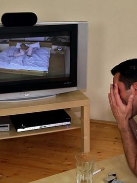 Фигуристая и сексапильная супруга была возмущена, когда застала своего мужа за онанизмом на порнуху. Как он может заниматься таким, когда живёт с горячей женой, готовой в любой момент исполнить супружеский долг и ублажить его похоть. Блондинка быстро вырубила порнуху и принялась лечить его от онанизма.