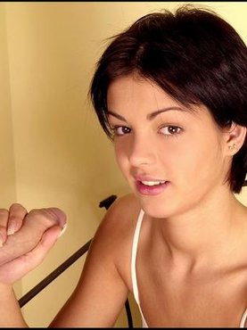 Молодая брюнетка любит брать защеку