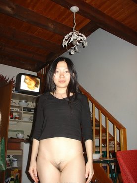 Симпатичная азиатка показывает голую грудь сидя на диване
