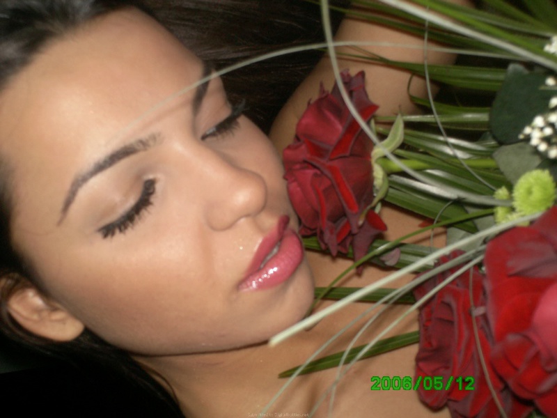 Красивая нимфа с обнаженными сиськами обожает позировать дома с цветами