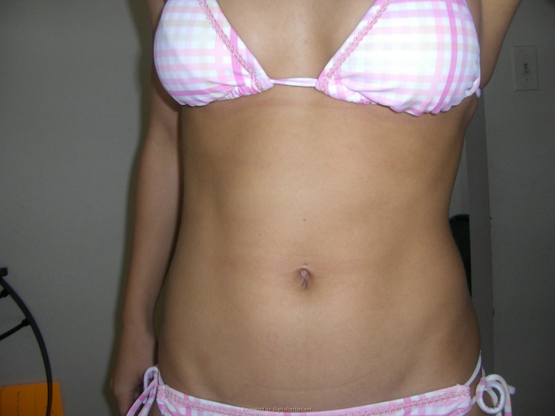 Стройная девушка позирует дома в новом купальнике
