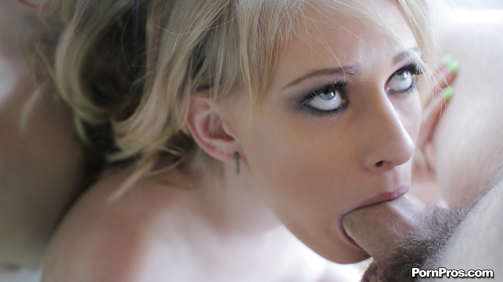 Возле зеркала блонда глубоко заглатывает пенис партнера