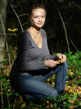 Развратная Стейси гуляет по лесу с голой писечкой