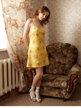 20-летняя девица сняла панталоны и сидя в кресле показала небритую писю