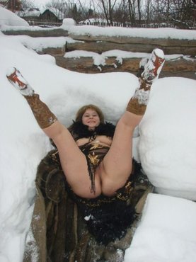 • Деревенская зрелка светит прелестями, когда валяется в снегу
